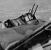 The Boulton Paul Defiant "turret fighter" was originally conceived under the F.9/35 specification for a "two-seat day and night fighter" to defend Great Britain against massed formations of unescorted enemy bombers.[27] Regardless of the requirement, the use of its dorsal turret was based on the "broadside" fighter interception and combined fighter attack tactic of bomber interception. Attempts to take on single-seat fighters with Defiants led to catastrophic results in 1940 over France and during the Battle of Britain.[29] With such high losses in day operations, the Defiant was transferred to night fighting and there the type achieved some success. Defiant night fighters typically attacked enemy bombers from below, in a similar manoeuvre to the later German Schräge Musik attacks, more often from slightly ahead or to one side, rather than from directly under the tail. During the Blitz on London of 1940–1941, the Defiant equipped four squadrons, shooting down more enemy aircraft than any other type.[30] The Defiant Mk II was fitted with AI.IV radar and a Merlin XX engine. A total of 207 Defiant Mk IIs were built but the Defiant was retired as radar-equipped Beaufighter and Mosquito night fighters entered service in 1941 and 1942.[31] Turret fighters with four 20mm cannon were specified under F.11/37 but got no further than a scaled prototype.[32]