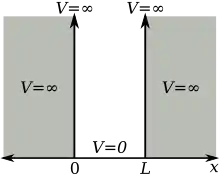 The particle in a one-dimensional potential energy box is the most mathematically simple example where restraints lead to the quantization of energy levels. The box is defined as having zero potential energy inside a certain region and infinite potential energy outside.[8]: 77–78 For the one-dimensional case in the direction, the time-independent Schrödinger equation may be written