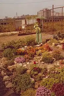 The site that is now the Garden and Schuylkill River Park was previously a B&O Railroad Station, which ran passenger service to New York City among other places, and the Kelly Brickyards. In the early 1980s, Gardeners began to dig out homemade plots, lay borders from cinder blocks and scrap wood, and start growing. They continued in this way happily for several years until the City of Philadelphia acquired the land and in 1984/1985 attempted to adsorb the site into the nascent Schuylkill River Park, writing the Garden out of these plans.[1] Behind the effort to remove the Garden was the city's Managing Director at the time, Leo Brooks, who lived directly across the street and did not like looking out at a bare patch during the winter months.[2] Like many community gardens, the future of this one was in jeopardy.