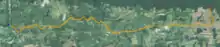 Satellite map of Schwaben Creek. The red dot is the stream's source and blue dot is its mouth. | |