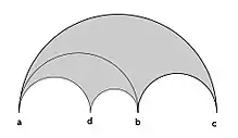 Similarly the reflected triangle in the second semicircle gives a new vertex b ⊕ c. It is immediately verified that a and b satisfy the neighbour condition, as do b and c.