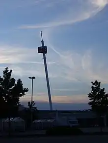Schwarzwald-Baar-Center is a large mall in Villingen-Schwenningen, Germany. It has a striking architecture as its roof is carried by an inclined tower with its name and which is also equipped with a flight safety lamp. Schwarzwald-Baar-Center was opened on September 28, 2000 and houses 35 stores.