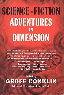Science-Fiction Adventures in Dimension is an anthology of science fiction stories edited by Groff Conklin, first published by Vanguard Press in hardcover in 1953. An abridged edition was issued by Grayson & Grayson in the UK, and an abridged paperback edition, with a different selection of stories from the original, was issued by Berkley Books; both abridgments carried unhyphenated titles.[1]