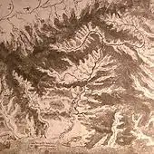 Recent research by Donato Pezzutto suggests that the background landscapes in Leonardo's paintings depict specific locations as aerial views with enhanced depth, employing a technique called cartographic perspective. Pezzutto identifies the location of the Mona Lisa to the Val di Chiana, the Annunciation to the Arno Valley, the Madonna of the Yarnwinder to the Adda Valley and The Virgin and Child with St Anne to the Sessia Valley.[11]