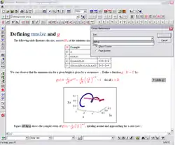 Although advertised as a WYSIWYG LaTeX-based word processor, it is actually a graphical user interface for editing LaTeX source files with the same ease-of-use of a word processor, while maintaining a screen view that resembles but is not identical to the eventual output that LaTeX produces.[1] For instance, its display shows text wrapped to the width of the screen rather than to the eventual page width, and colored equations rather than the black-and-white rendering that LaTeX would normally produce.[2] It also includes an integrated computer algebra system.[1]
