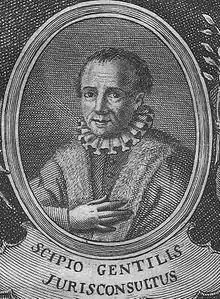 Scipione Gentili (Latin: Scipio Gentilis; 1563 – August 7, 1616) was an Italian law professor and a legal writer. One of his six brothers was Alberico Gentili, one of the fathers of international law.