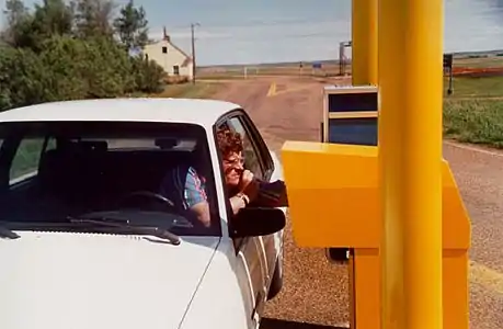In 1996, this border crossing became the world's first fully automated port of entry, using biometrics to confirm the identity of travelers.[5] The US and Canadian governments engaged in a cooperative prototype project to enable certain trusted individuals with nothing to declare to cross the border in either direction after the port had closed for the night. Local residents who were enrolled could use a speaker recognition system to open the gates and enter the country without inspection.[6] This system was replaced with a Remote Video Inspection System in 1998, which was decommissioned after the September 11 attacks of 2001.[7]