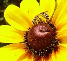 Some species of bees transport pollen internally in the crop, and they lack a scopa, as do kleptoparasitic bees, which do not gather their own pollen.[1][2]
