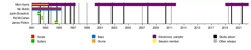 - Nic Bullen - vocals, bass, electronics (1991–1995)