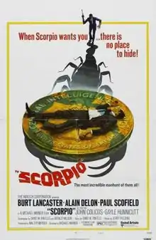 Scorpio is a 1973 American spy film directed by Michael Winner and written by David W. Rintels and Gerald Wilson. It stars Burt Lancaster, Alain Delon and Paul Scofield. Delon plays the title character, a hitman hired by the CIA to assassinate his mentor (Lancaster), a former agent suspected of treason. The film's score was composed by Jerry Fielding.