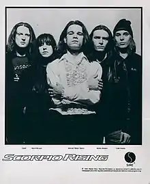 Scorpio Rising was formed in Birkenhead in 1989.[1] The group's first live performances took place in small clubs in Liverpool, with several shows at Liverpool Planet X and Cosmos Clubs in late 1989. The original line up featured David "Stig" Renton on bass guitar. Scorpio Rising's definitive line up and the sound were created when the band was joined by Parliament/Funkadelic influenced bass player Steve Soar in 1992.