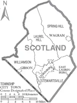 Scotland County comprises the Laurinburg, NC Micropolitan Statistical Area, which is also included in the Fayetteville-Lumberton-Laurinburg, NC Combined Statistical Area.