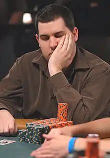 Scott Montgomery (born October 16, 1981) is a poker player from Perth, Ontario, Canada who won his first bracelet at the 2010 World Series of Poker in the $1,000 No-Limit Hold’em Event #36 and was one of the final table players in the 2008 World Series of Poker Main Event. He finished in fifth place earning $3,088,012,[1] which was his fourth cash in the 2008 WSOP. He was eliminated by Peter Eastgate after going all in with . Eastgate had pocket sixes. Montgomery got an ace on the flop and another on the turn. Another player, Dennis Phillips, had folded a six, meaning Eastgate could only hit the to win the hand. Eastgate hit his card, giving him a full house and eliminating Montgomery.
