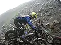 The current Scott Trial continues to be a time and observation event run over an off-road course of 84 miles, divided into 76 sections.[5] Riders lose marks for putting a foot down or "footing" in the observed sections and for finishing behind the fastest rider.[1] Over the years a huge range of special awards and memorial trophies have become associated with the Scott Trial, including 'best performing Yorkshireman' and 'oldest official finisher'.[6] As in 1962 the weather can be as harsh as the course. In 1998 only 27 of the 147 entries completed the course. On this occasion Graham Jarvis won for the third time with the fastest time of 5 hours 50 minutes. In 2008 rain reduced the finishers to 60 out of 200 with Jarvis winning for the 8th time.[5][7][8] In 2009 Graham Jarvis won again despite being 28 minutes slower than the previous years runner-up James Dabill. His unique skill over the sections, losing him 22 points compared to Dabill's 38, gave him his ninth win.[9]