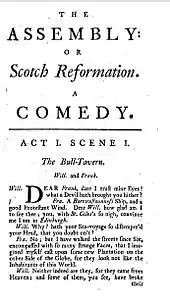 The first page of The Assembly by Archibald Pitcairne from the 1766 edition