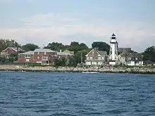 There are two points of interest in Sea Gate. Located on Beach 47th Street in Sea Gate is the 75-foot-tall (23 m) Coney Island Light, is a lighthouse built in 1890, before the area was populated. The lighthouse is the former home of Frank Schubert, the United States' last civilian lighthouse keeper, who died in 2003.[1] The chapel in Sea Gate, once used for services and built in 1901, is a historical building now used for social events, yoga classes, and is a polling site at election times. The Chapel with its stained-glass windows is the first structure seen when entering the main security gate.[1]