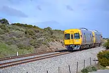 Prior to 2014, most trains were operated by 3000 class railcars augmented at times by 2000 class railcars. Since the electrification of the line, the latter are no longer authorised to operate on the line.[1] Most services are now operated by A-City electric multiple units. A number of railcars needed for peak-hour services are now stabled overnight in secure sidings at Port Stanvac, north of Lonsdale station, and at a much bigger facility adjacent to Seaford Meadows. The last freight trains on the line, to and from Port Stanvac Refinery, ceased in the late 1990s.
