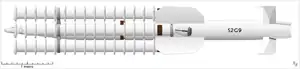 The Seaslug Mark 1 was powered by the solid-fuel Foxhound (390 kg fuel) sustainer motor[lower-roman 4] and Gosling(145 kg) booster motors. It had a radio proximity fuze and 200 lb (91 kg) blast warhead.