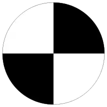 Similar disks, with a black-and-yellow pattern, are used as fiducial markers on vehicles in crash tests, crash-test dummies, and other kinetic experiments.