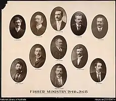 The Second Fisher Ministry (Australian Labor Party) was the 8th ministry of the Government of Australia. It was led by the country's 5th Prime Minister, Andrew Fisher. The Second Fisher Ministry succeeded the Third Deakin Ministry, which dissolved on 29 April 1910 following the federal election that took place on 13 April which saw Labor defeat the Alfred Deakin's Commonwealth Liberal Party. It is the first federal government in Australian history to be elected with a majority in the House of Representatives, as well as the first majority national Labor government in the world. The ministry was replaced by the Cook Ministry on 24 June 1913 following the federal election that took place in May which saw the Liberals defeat Labor.[1]