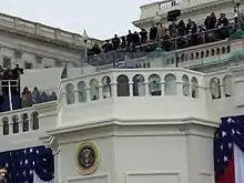 At the conclusion of his inaugural address, Obama walked back into the Capitol building, then turned for a moment to look out at the National Mall, filled with hundreds of thousands of flag-waving Americans. He said to those close to him: "I want to take a look one more time. I'm not going to see this again."[45] Shortly afterward, he signed the Capitol's guest book.