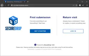 SecureDrop uses the anonymity network Tor to facilitate communication between whistleblowers, journalists, and news organizations. SecureDrop sites are therefore only accessible as onion services in the Tor network. After a user visits a SecureDrop website, they are given a randomly generated code name.[6] This code name is used to send information to a particular author or editor via uploading. Investigative journalists can contact the whistleblower via SecureDrop messaging. Therefore, the whistleblower must take note of their random code name.[3]