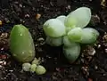 Plants are usually propagated by stem or leaf cuttings. The leaf attachment is quite delicate and leaves will readily break off the stem when manipulated. The leaves will stay alive for many days and roots will emerge after a few days, especially with local humidity. Individual leaves will produce inches-long plants.