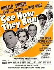 See How They Run is a 1955 British comedy film directed by Leslie Arliss, and written by Leslie Arliss, Philip King, Roy Miller and Val Valentine.[2] Produced by Bill Luckwell and Derek Winn for Winwell, the film stars Ronald Shiner as Wally Winton, Greta Gynt, James Hayter and Wilfrid Hyde-White.[3]