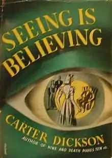 Seeing is Believing (also published as Cross of Murder) is a mystery novel by the American writer John Dickson Carr, who published it under the name of Carter Dickson. It is a whodunnit and features the series detective Sir Henry Merrivale and his associate, Scotland Yard's Chief Inspector Humphrey Masters. The novel was originally published in 1941.
