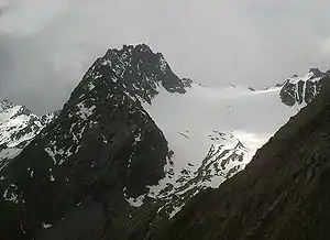 ![]() West ridge of the Seekogel from the Löcherferner (glacier). | |