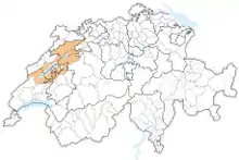 The region is at the boundary of the cantons of Bern, Fribourg, Neuchâtel, and Vaud, forming part of the linguistic boundary region between French- and German-speaking Switzerland.