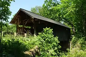 The Seguin Covered Bridge, also called the Upper Covered Bridge and the Sequin Covered Bridge,[2] is a wooden covered bridge that crosses Lewis Creek in Charlotte, Vermont on Roscoe Road. It was built about 1850, and is a distinctive variant of a Burr arch design. It was listed on the National Register of Historic Places in 1974.[1]