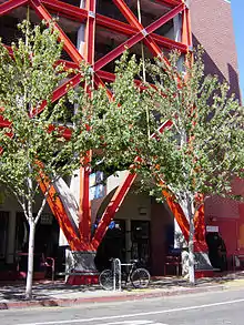In other circumstances, far greater reinforcement is required. In the structure shown at right — a parking garage over shops — the placement, detailing, and painting of the reinforcement becomes itself an architectural embellishment.
