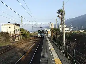 The station is served by the JR Shikoku Yosan Line and is located 92.2 km from the beginning of the line at Takamatsu.[3] Yosan line local, Rapid Sunport, and Nanpū Relay services stop at the station.[4]