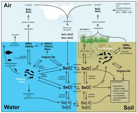 - Winkel, Lenny; Vriens, Bas; Jones, Gerrad; Schneider, Leila; Pilon-Smits, Elizabeth; Bañuelos, Gary (2015). "Selenium Cycling Across Soil-Plant-Atmosphere Interfaces: A Critical Review". Nutrients. 7 (6): 4199–4239. doi:10.3390/nu7064199. PMC 4488781. PMID 26035246.
