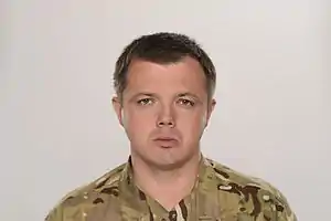 Semen Ihorovych Semenchenko (Ukrainian: Семен Ігорович Семенченко) is a former deputy to the Verkhovna Rada of Ukraine, First Deputy Chairperson of the Verkhovna Rada of Ukraine Committee on National Security and Defence[3] and the commander-founder of the volunteer territorial defence battalion "Donbas", based in Donetsk.[4][5] He was a deputy of the Verkhovna Rada from 2014 to 2019.[6]