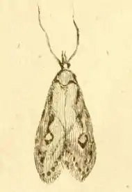 The wingspan is 24–34 mm.[2] Adults are on wing from March to April.[3]