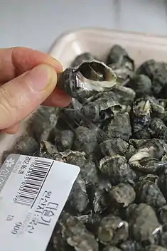 ![]() Pre-packaged Semisulcospira libertina snails sold in Korea | |