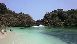 Sempu is an island located 800 meters from the southern coast of the province of East Java in Indonesia, about 70 km south of the city of Malang. The island comprises the administrative village of Tambakrejo within Sumbermanjing District of Malang Regency, with a population at the 2020 Census of 7,193.[1] It is 3.9 km long and 3.6 km wide, and covers a land area of 8.77 km2. Its topography is largely rolling hills whose altitude ranges from 50 to 100 meters above sea level.[2] The coastline consists mainly of limestone cliffs characteristics of the façade of the island of Java in the Indian Ocean.