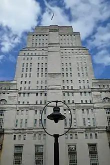 Positive comments came from functionalist architect Erich Mendelsohn in 1938, who wrote to Holden that he was "very much taken and am convinced that there is no finer building in London."[12] Architectural historian Arnold Whittick described the building as a "static massive pyramid ... obviously designed to last for a thousand years", but thought "the interior is more pleasing than the exterior. There is essentially the atmosphere of dignity, serenity and repose that one associates with the architecture of ancient Greece."[13] Nikolaus Pevsner was less enthusiastic. He described its style as "strangely semi-traditional, undecided modernism" and summarised the result: "The design certainly does not possess the vigour and directness of Charles Holden's smaller Underground stations."[14] Others have described it as Stalinist[15] or as totalitarian due to its great scale.[1]