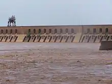 The Sennar dam is one of the highlights of the state of Sennar as the first dam built in the country with a lake capacity of about 390 million cubic meters of water used in irrigating agricultural projects such as Blue Nile Agricultural Foundation,[4] Al Sookie agriculture project,[5] Al Managel agriculture project,[6] Aljazeera agriculture project,[7] west of Sennar sugar project, and the Al-Rahad agriculture project,[8] in addition to the use of storage in hydraulic power generation, which is estimated to have a production of about 14 MW covering more than 80% of sennar state's consumption and covers the slight deficit of the national grid.