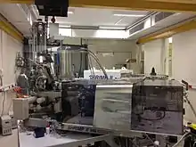 The SHRIMP originated in 1973 with a proposal by Prof. Bill Compston,[2] trying to build an ion microprobe at the Research School of Earth Sciences of the Australian National University that exceeded the sensitivity and resolution of ion probes available at the time in order to analyse individual mineral grains.[3] Optic designer Steve Clement based the prototype instrument (now referred to as 'SHRIMP-I') on a design by Matsuda[4] which minimised aberrations in transmitting ions through the various sectors.[5] The instrument was built from 1975 and 1977 with testing and redesigning from 1978. The first successful geological applications occurred in 1980.[3]