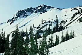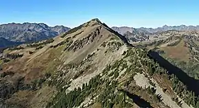 Sentinel Peak is a 6,592-foot-high (2,009 m) mountain summit located in the Olympic Mountains, in Jefferson County of Washington state.[3] Rising in the center of Olympic National Park, its nearest higher neighbor is Mount Fromme, 1.42 miles (2.29 km) to the northwest.[1] Sentinels Sister is a lower 6,301-foot-high (1,921 m) companion summit situated 0.65 miles (1.05 km) to the southwest.[5] The two peaks stand as sentinels above the Dosewalips Valley and Hayden Pass, and were possibly named by an early expedition of the Seattle Mountaineers.[6] Precipitation runoff from the peak drains to Hood Canal via the Dosewallips River.
