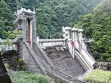 The Senzu Dam is a solid core concrete gravity dam with dual spillways. When completed, it was the highest concrete gravity dam in central Japan, and won a design award from the Japan Civil Engineering Association. However, the designers did not take into account the high levels of silt and sedimentation in the Sumata River. By 2002, it was estimated that over 97.7% of the usable capacity of Senzu Dam was filled with mud, and must now be constantly dredged to permit flow of water for power generation.[1]