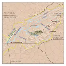 The Sequatchie River is a 116-mile-long (187 km)[2] waterway that drains the Sequatchie Valley, a large valley in the Cumberland Plateau in Tennessee. It empties into the Tennessee River downstream from Chattanooga near the Tennessee-Alabama state line.