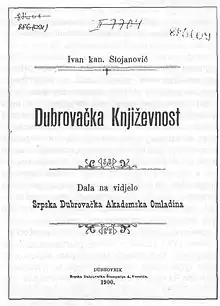 The cultural and political movement of Serbs in Dubrovnik was started around this time, notably by Nikolajević's 1838 article in the newspaper Srbsko-Dalmatinski Magazin (published in Zadar by Božidar Petranović), where he claimed the entire Ragusan Slavonic literary corpus for Serbian literature.[6]