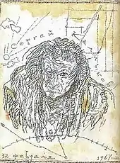 Sergey Ivanovich Kalmykov (Russian: Серге́й Иванович Калмыков; 6 October 1891 – 27 April 1967) was a Russian painter, draughtsman, and writer. Barely known during his art career and abandoned at the end of his life, he is currently regarded as one of the most important figures of the Russian avant-garde art, an author of over fifteen hundred of paintings, drawings, illustrations, theater decorations, and numerous writings. During his life Kalmykov has developed an original style of painting and draftsmanship that can be described as 'magical impressionism'.