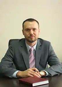 Serhiy Mykolayovych Shkarlet (Ukrainian: Сергій Миколайович Шкарлет; born 19 October 1972[2]) is a Ukrainian economist and politician. On 25 June 2020 he was assigned as the Acting Minister of Education and Science.[3] On 17 December 2020 parliament appointed Shkarlet as Minister of Education and Science.[4]