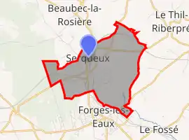 A village situated at the source of the Epte river in the Pays de Bray, some 30 miles (48 km) southeast of Dieppe at the junction of the D 1314, D 13 and D 83 roads. The Serqueux station is an important interchange station for TER regional trains. Serqueux has an important plant producing most of the gum arabic in the world. The commune has also an important commercial zone which is by far the biggest in the canton.