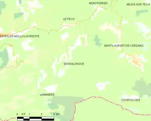 Serralongue is located in the canton of Le Canigou and in the arrondissement of Céret.